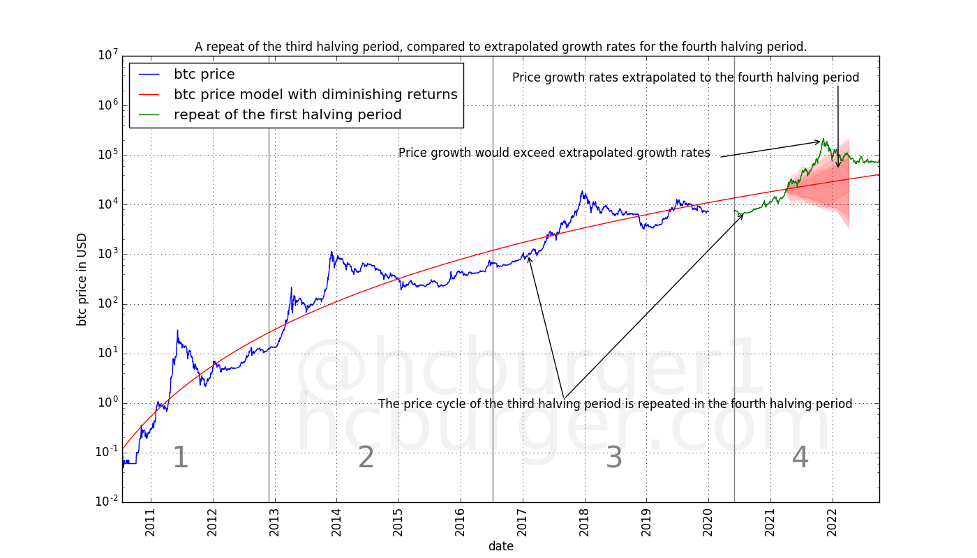 Using this extrapolation method, the price movements of the third halving period would be too extreme.